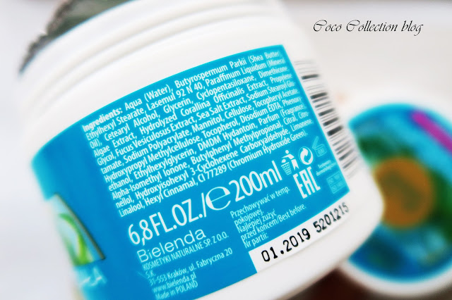Rzeczywiście znajdziemy tu masło Shea, glicerynę, ekstrakt z alg, ekstrakt z alg koralowych, ekstrakt z soli morskiej, wyciąg z morszczynu pęcherzykowatego, witaminę E, związki zapachowe, ale i parafinę, stabilizatory itd.