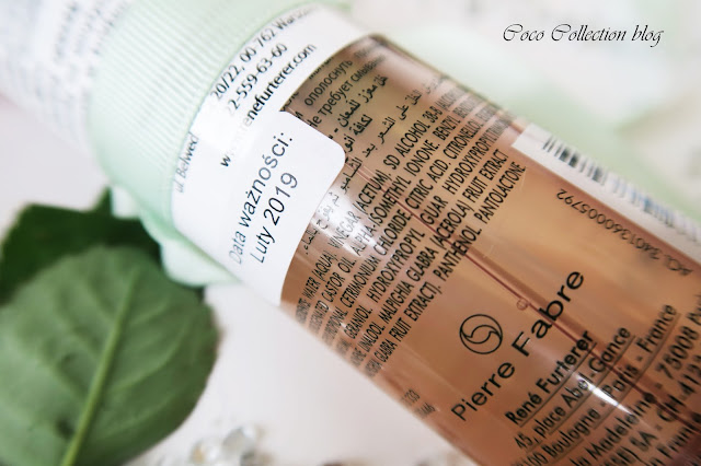 W składzie kosmetyku znajdziecie: bazową wodę, ocet, wyciąg z aceroli, olejek rycynowy, związki zapachowe, panthenol czy kwas cytrynowy.