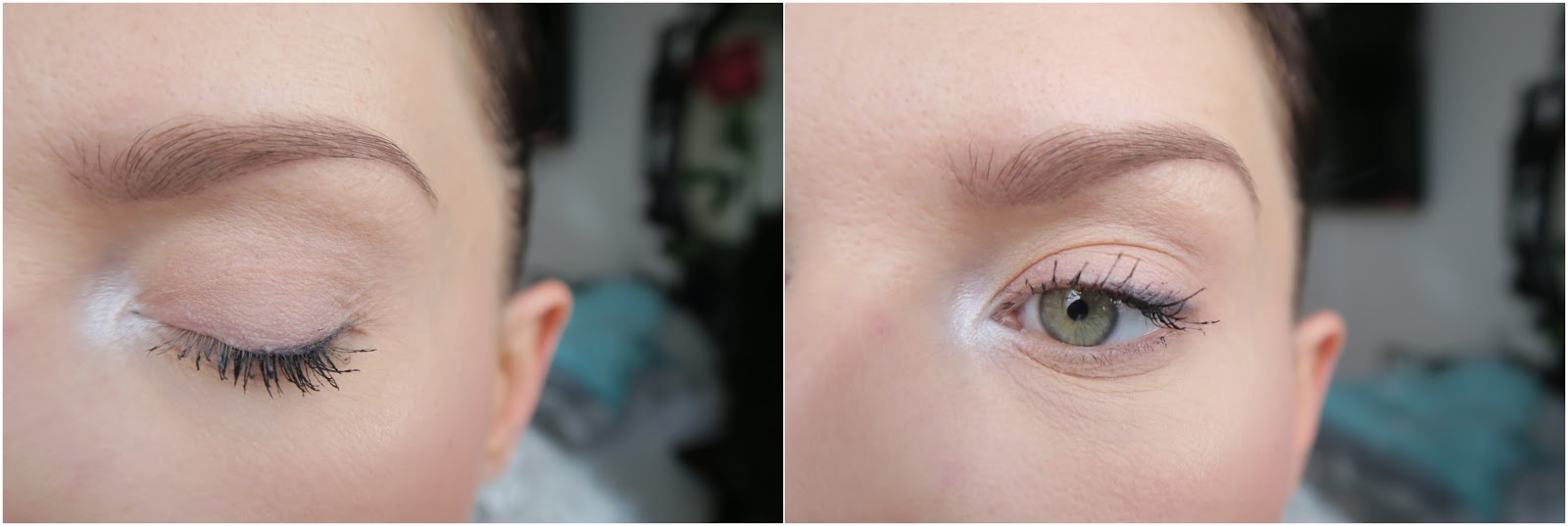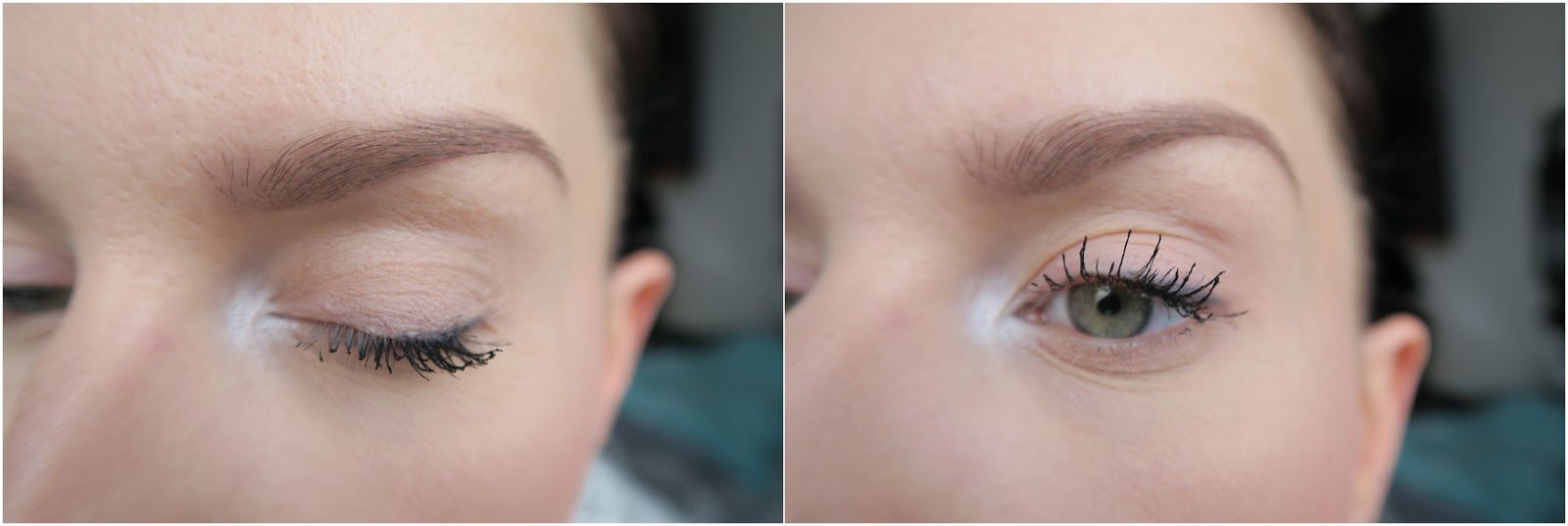 Szczoteczka tego tuszu jest bardzo fajna, cienka i klasyczna. Ładnie wyciąga rzęsy, nie drapie w powieki i zbiera wystarczającą ilość produktu. Co ważne maskara nie podrażnia oczu i mogą stosować ją wrażliwcy. Zobaczcie teraz jaki efekt daje na moich rzęsach: