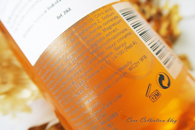 Płyn ma gęstą, żelową konsystencję o pomarańczowym zabarwieniu. Daje przyjemną pianę, która umila kąpiel. Do tego niesamowicie pachnie, a zapach jest luksusowy, ciepły, idealny na jesienne i zimowe wieczory. Długo utrzymuje się w łazience, a nawet bym dodała, że delikatnie relaksuje.