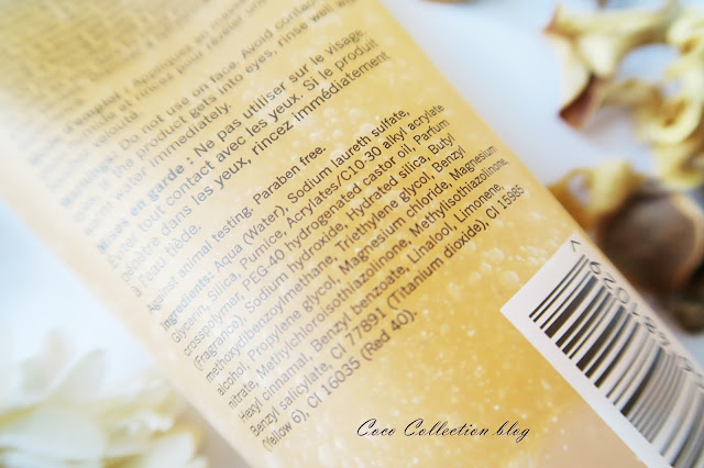 W składzie peelingu mamy glicerynę, pumeks, związki zapachowe, barwniki, itd.