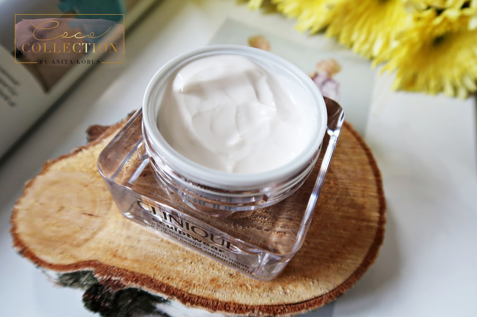 Gdyby nie wizyta w sklepie stacjonarnym marki CLINIQUE to pewnie nigdy bym nie zwróciła uwagi na ten produkt. Dopiero po konsultacji ze specjalistą i dobraniu odpowiednich preparatów do typu mojej skóry, jej potrzeb i mojego wieku okazało się, że w ofercie jest bardzo ciekawa kremowa maska, którą można stosować na kilka sposobów. Po pierwsze – jako maskę całonocną, po drugie – jako kosmetyk, który możemy wmasować za pomocą specjalnego urządzenia. Ja takiego gadżetu nie posiadam ( myślę, by to zmienić ), więc zaczęłam stosować kosmetyk właśnie typowo na noc. Nie ukrywam, że konsystencja bardzo przypadła mi do gustu. A jak z jej działaniem?