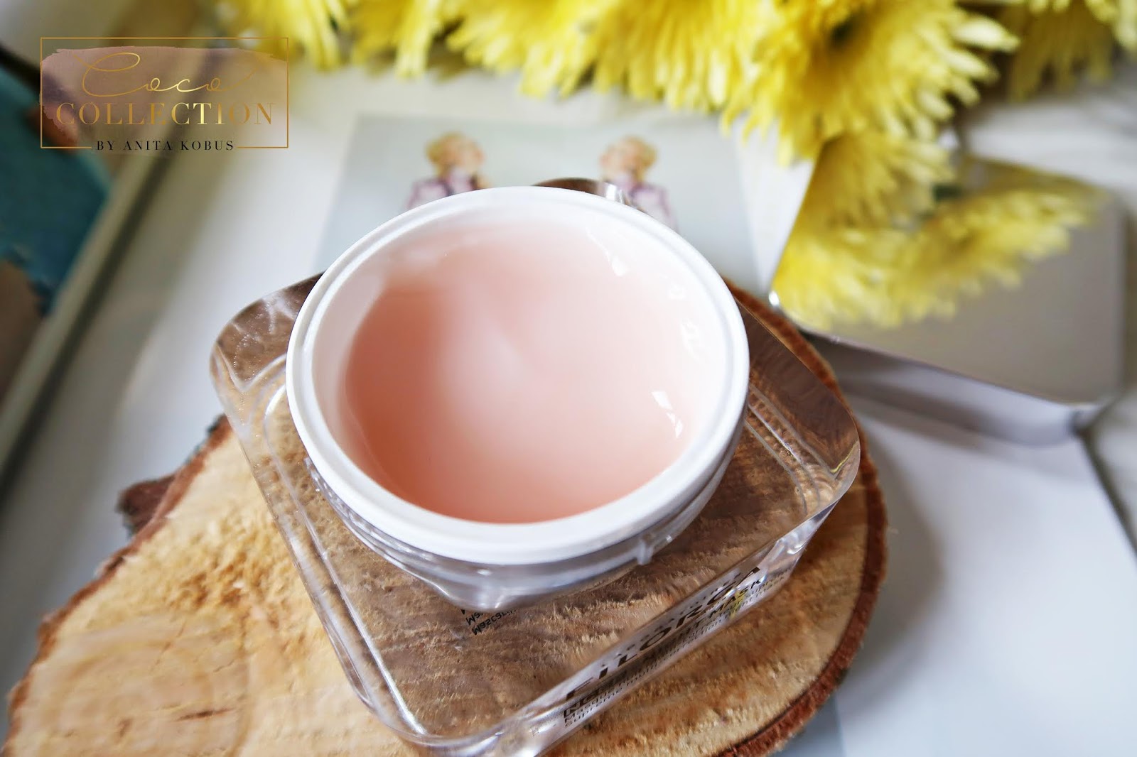Maska ma bardzo ciekawą konsystencję. Jest żelowa, o różowej barwie i posiada delikatny zapach, który szybko ulatnia się ze skóry. Wchłania się dosłownie w kilka minut. Nie podrażnia skóry, nie powoduje pieczenia czy swędzenia. Dodam nawet, iż za każdym razem gdy ją nakładam mam wrażenie, iż nieco koi skórę. Oczywiście aplikujemy ją na oczyszczoną skórę twarzy, szyi oraz w okolicach oczu. A co widzicie rano? To jest maska, dzięki której nie tylko macie polepszoną pracę Waszej skóry podczas snu, ale rano wyglądacie na wypoczęte. Czy młodsze? Tego procesu nie da się zatrzymać, niemniej jednak skóra jest pełna blasku, a zmarszczki są mniej wyraźne.