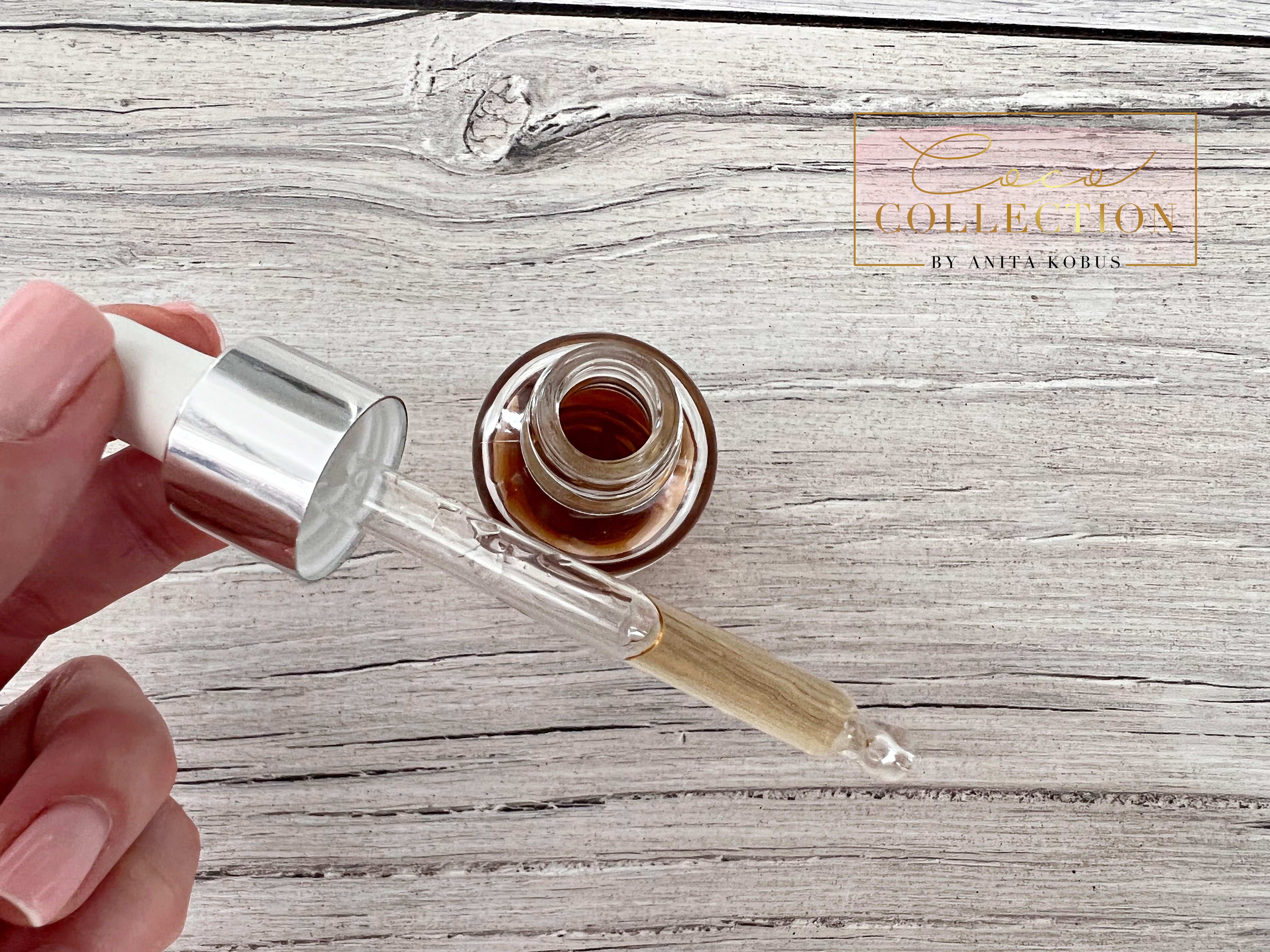 Konsystencja kropli jest wodnista o odcieniu pomarańczowo – beżowym. Zapach rzeczywiście bardzo dyskretny, kwiatowy, delikatny. Dla mnie to ogromny plus. Myślę, że spokojnie możemy przejść do aplikacji produktu oraz jego działania.